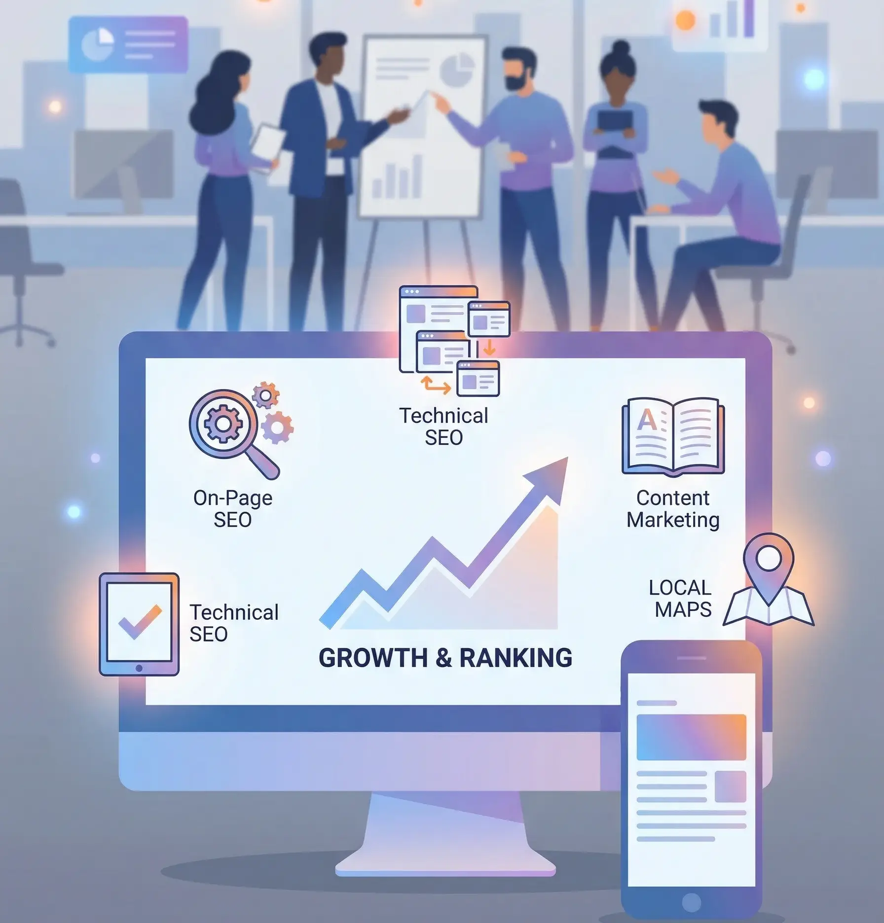 SEO focuses on Get Me Ranksing the speed of your website, mobile usability, and navigation, ensuring a better user experience, which also benefits rankings.